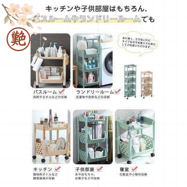 ■台所 ワゴン キッチンラック バスケットラック 収納棚 野菜ストッカー 隙間収納 5段 プラスチック キャスター付き 洗面所 ランドリー ス