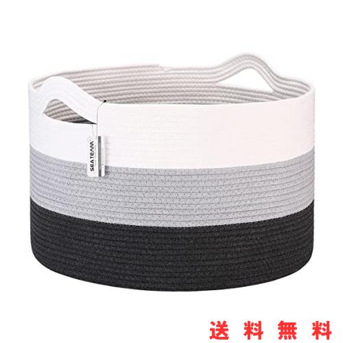 ■Sea Team ランドリー収納 コットンロープバスケット 収納かごバ スケット 持ち手付き ランドリー ランドリーバスケット 収納ボックス 洗
