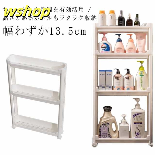 3段 スリムワゴン スリム収納 ストッカー すきま収納 キッチン隙間収納 隙間収納 4段 隙間収納 隙間ラック キッチンワゴン キャスター付き 冷蔵庫横 調味料ラック 幅13.5cm ランドリー 洗濯機 すきま収納 洗面所 洗面台