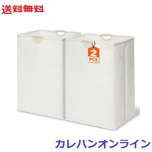 ■Caroeas 洗濯カゴ 72L×2枚セット オフホワイト ランドリーバスケット 折り畳み式 ランドリーかご 洗濯物入れ 洗濯バスケット ランドリー