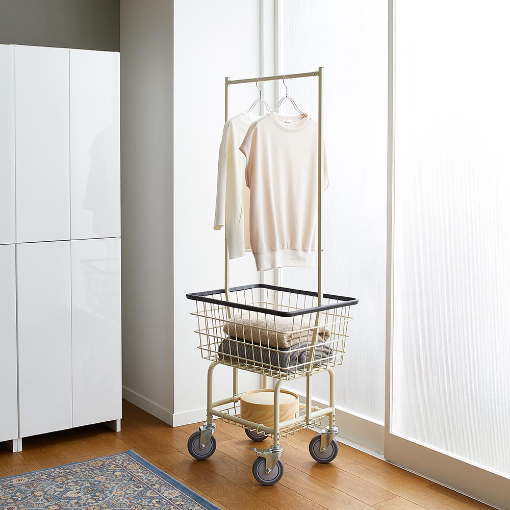 ■DULTON/ダルトン ランドリーカート アイボリー ハンガーラック付き トイレ 洗面所 ランドリー収納 ランドリー 洗濯かご H82533
