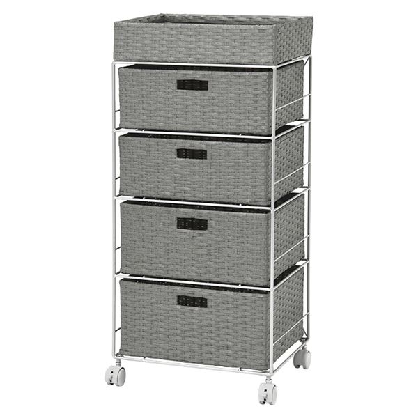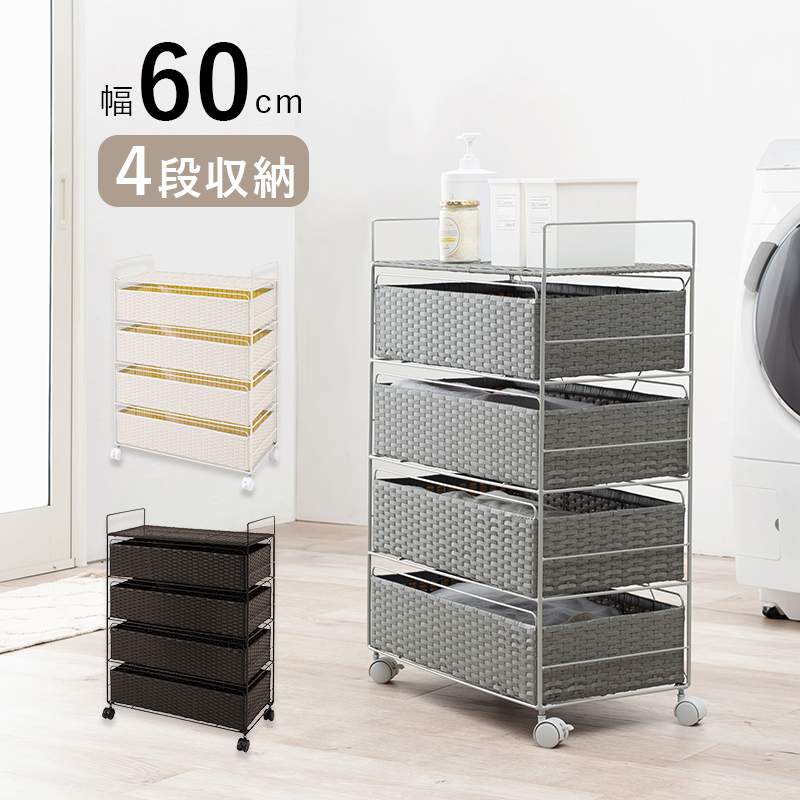 ■ランドリーラック 収納かご ランドリー RAN-2411 幅40.5 おしゃれ キャスター付き ラタン風 棚 4段 角型 完成品 隙間 通気性 バスケット