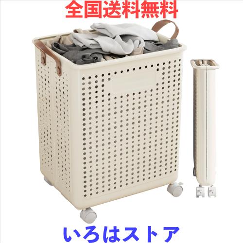 ■LongYi 洗濯かご ランドリー バスケット 折り畳み スリム 洗濯カゴ 折りたたみ 洗濯籠 折畳み キャスター付き 取っ手付き 大容量 ランド