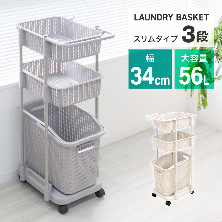 ■ランドリーバスケット スリム 3段 ランドリー バスケット カゴ ランドリーラック ランドリーボックス ランドリーワゴン 洗濯かご 洗濯カ