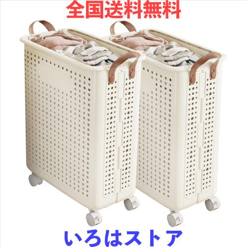 ■LongYi 洗濯かご ランドリー バスケット 折り畳み スリム 洗濯カゴ 折りたたみ 洗濯籠 折畳み キャスター付き 取っ手付き 大容量 ランド