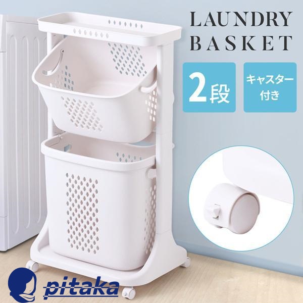ランドリーバスケット 2段 キャスター おしゃれ スリム メッシュ バスケット型ランドリー 洗濯物入れ ランドリー 収納 大容量 洗濯かご