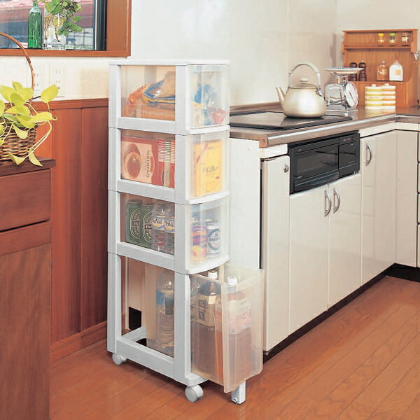 ■隙間収納 20cm キッチンワゴン 4段 深型 キャスター付 スリム すき間収納 キッチン 洗面所 ランドリー 収納 キッチンラック 棚 ストッカ