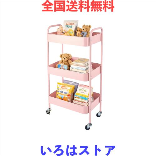 ■Ufriandz キッチンワゴン 収納ワゴン ピンク 3段建て 移動実用カートは キッチン オフィス 寝室 ランドリー 狭いスペース, 簡単組み立て
