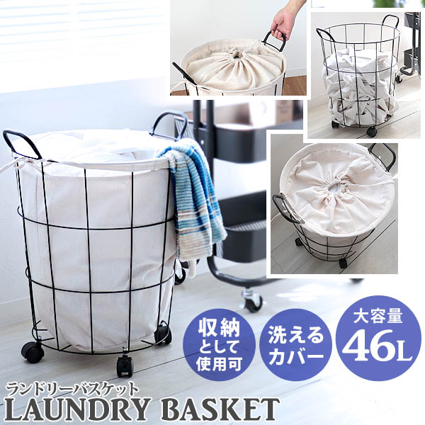 ■ランドリーバスケット ランドリーワゴン ワイヤー キャスター付き おしゃれ 46L 大容量 ワイヤーバスケット ランドリー 洗濯物入れ かご