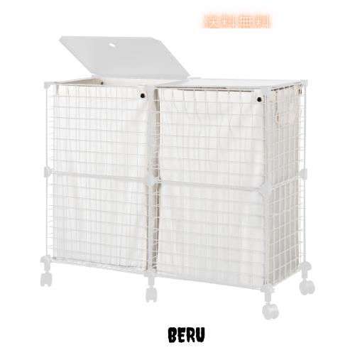 ■UZENN 144L メタル ランドリーバスケット 蓋付き 洗濯カゴ 仕分け 大容量 キャスター付き ランドリー ボックス ワイヤーネット 洗濯物入