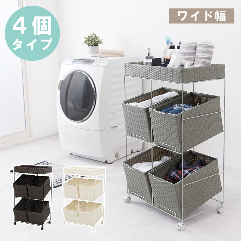 取っ手を持って引出しを運べるので洗濯物の収納や片付けが効率的に。樹脂製なのでお手入れしやすいランドリー収納です。