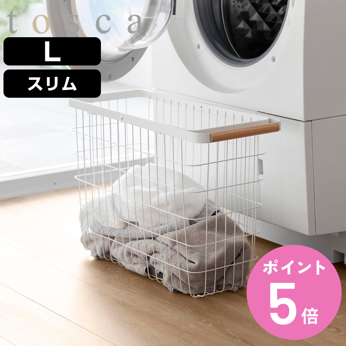 ■山崎実業 tosca ランドリーバスケット トスカ スリム L ( 4903208103787 トスカシリーズ ホワイト 洗濯かご ランドリー 洗濯 かご 洗濯