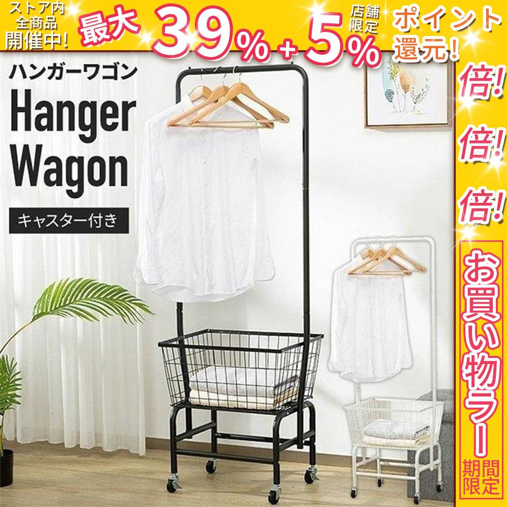 ハンガーラック スリム 頑丈 おしゃれ ランドリー ワゴン カゴ キャスター パイプ ハンガー ポール ワゴン付き 洋服掛け ラック 北欧 アイアン 安い