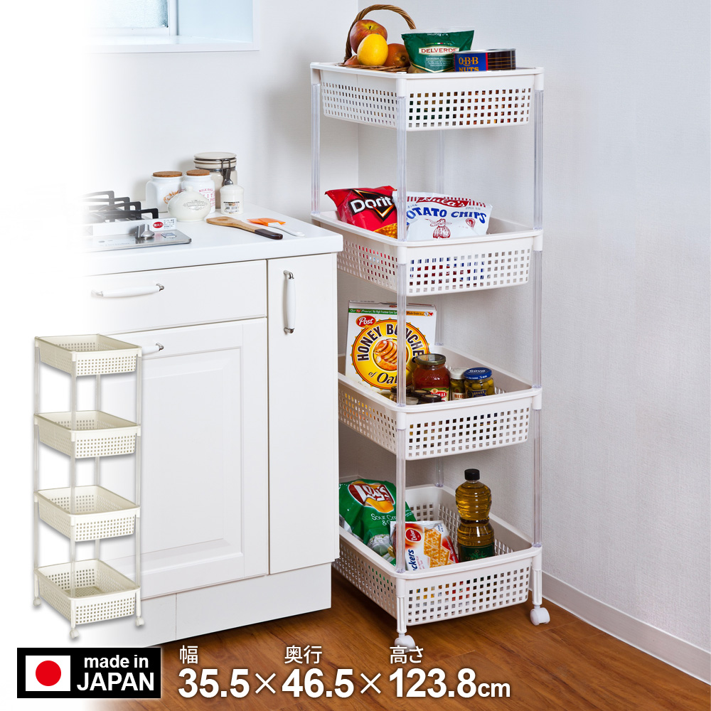 ■バスケットワゴン 4段 アイボリー | キッチンワゴン ランドリーバスケット 4段 大容量 バスケット ランドリー ラック キッチン パントリ