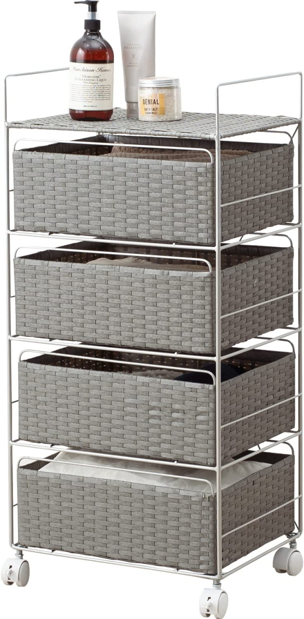 ■ランドリーチェスト 4段 幅60cm 高さ85cm キャスター付 引出し スチール ポリエチレン ( ラタン調 ランドリー チェスト ラック 防水 ア
