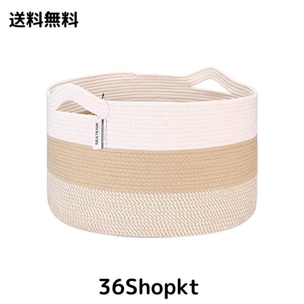 ■Sea Team ランドリー収納 コットンロープバスケット 収納かごバ スケット 持ち手付き ランドリー ランドリーバスケット 収納ボックス 洗