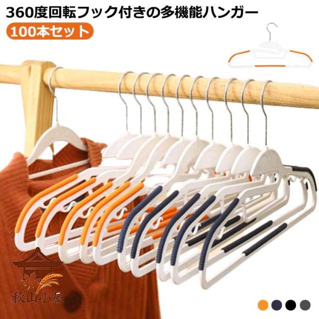 ■ハンガー 多機能ハンガー 滑り止め 跡がつかない すべらない ランドリー 肩 100本セット 360度回転フック 防水 シルエットハンガー スリ