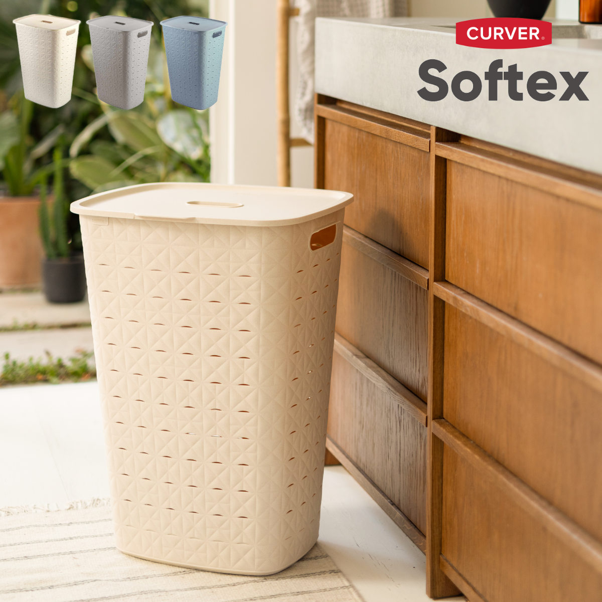 ■ランドリーバスケット CURVER ソフテックス フタ付き 56L ( カーバー Softex バスケット ランドリー 持ち手付 樹脂 洗濯 脱衣かご 洗濯