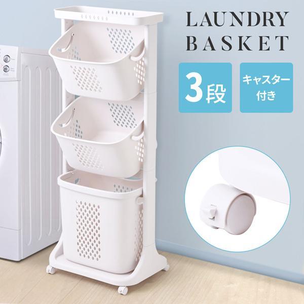 ランドリーバスケット 3段 キャスター おしゃれ スリム メッシュ バスケット型ランドリー 洗濯物入れ ランドリー 収納 大容量 洗濯かご
