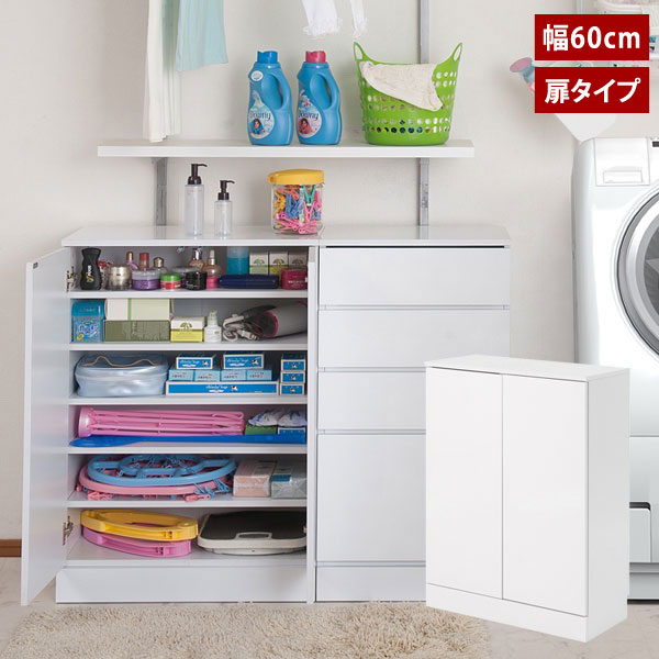 ■薄型ランドリーラック 幅60cm 扉タイプ ランドリー 収納 キャビネット FACE ホワイト FY-0002-NS