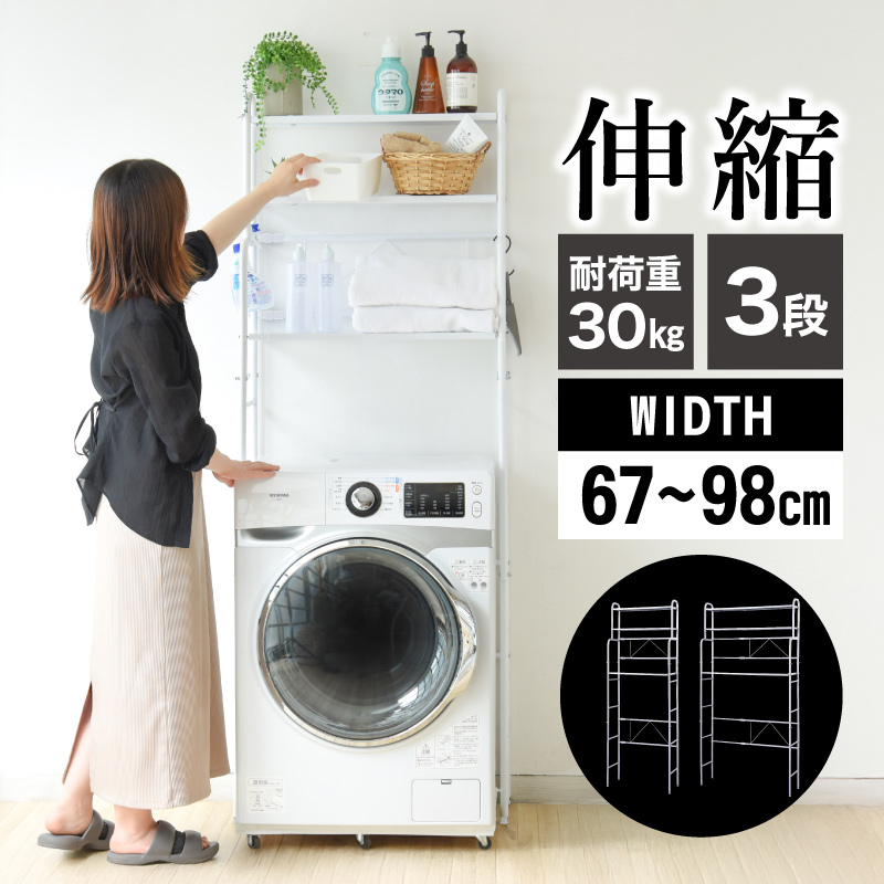 ■【訳アリセール】ランドリーラック 3段 幅67〜98cm ランドリーラック 伸縮 洗濯機 ラック 縦型 ランドリー 収納 洗濯機棚 ランドリー収納