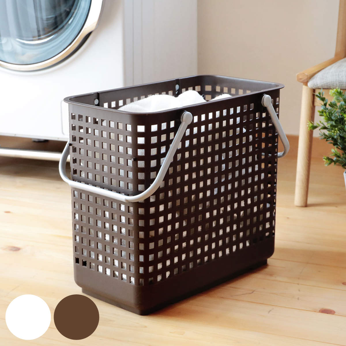 ■備考:シーンによって選べる洗濯や収納に便利なバスケットシリーズ。こちらは「タウンバスケット」ミニサイズのページです。柔軟性のある素材のハンドルが握りやすく、持ち運びに便利です。・環境にやさしい素材原材料にはサトウキビ由来のバイオマスプラスチックを使用。やわらかな素材感です。・並べて使えるスリムなデザインで、分別用に並べてお使いいただくのに適しています。・別売りワゴン対応別売りの「バンブーランドリーワゴン」の上段に置いてお使いいただけます。■商品サイズ:幅36.6×奥行き22×高さ27cm■カラー:ホワイト、グレー■材質:ポリエチレン■原産国:日本■商品重量:342g