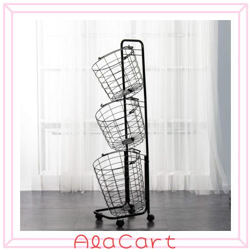 ◆商品名:ランドリーラック3段 ランドリー ボックス バスケットワゴン キャスター付き ワイヤー 持ち手 洗濯カゴ 脱衣かご 取り外し可能 組立品 収