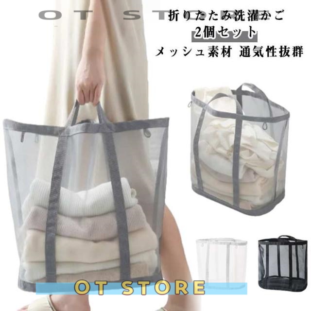折りたたみ洗濯かご 大容量 折りたためる 洗濯カゴ バスケット 折りたたみ 洗濯物入れ 洗濯籠 ランドリー ランドリーバッグ 折り畳み ランドリーバスケット 2個セット 2個セット おしゃれ 収納 メッシュ 洗濯 軽量 持ち運び 玩具収納 多機能