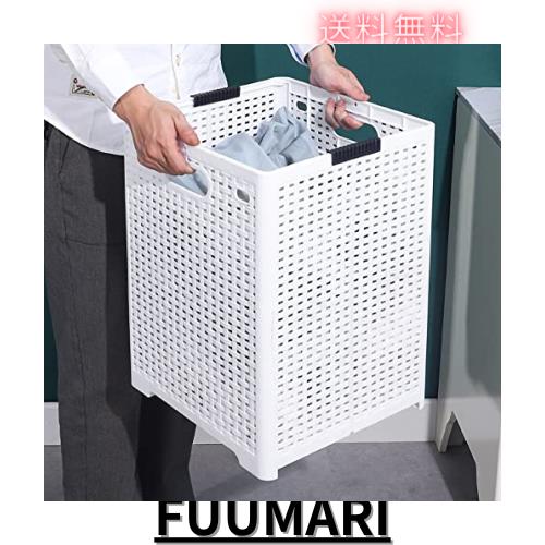 ■ランドリー バスケット 洗濯カゴ 折り畳み式 大容量 おしゃれ 取っ手付き ランドリー収納 ボックス ごみ箱 省スベース 48L (ホワイト)