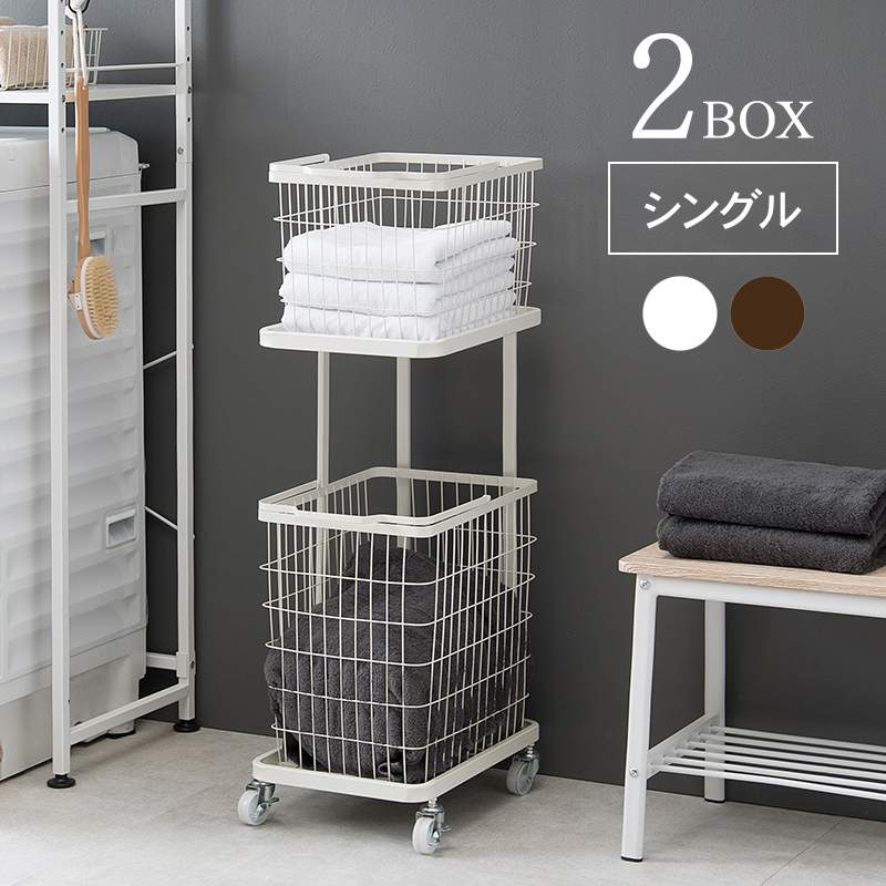 ランドリーラック 色柄物や汚れた洗濯物を分けて溜められるランドリーワゴン。バスケットは持ち運べて便利。 生産地 中国製 サイズ (約)幅33×奥行42×高さ97cm 素材 主材:スチール ■組立式 ■キャスター付
