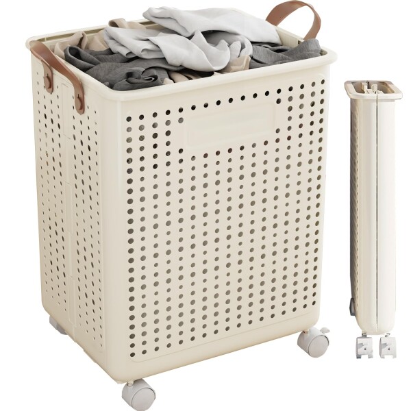 ■LongYi 洗濯かご ランドリー バスケット 折り畳み スリム 洗濯カゴ 折りたたみ 洗濯籠 折畳み キャスター付き 取っ手付き 大容量 ランド