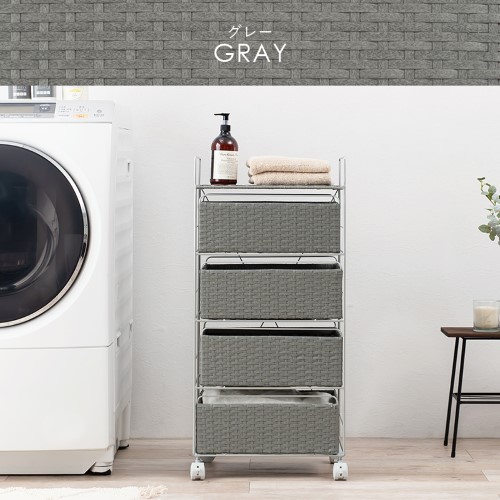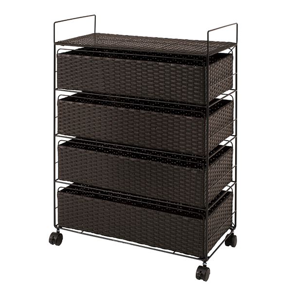 ■ランドリーチェスト 4段 幅60cm 高さ85cm キャスター付 引出し スチール ポリエチレン ( ラタン調 ランドリー チェスト ラック 防水 ア