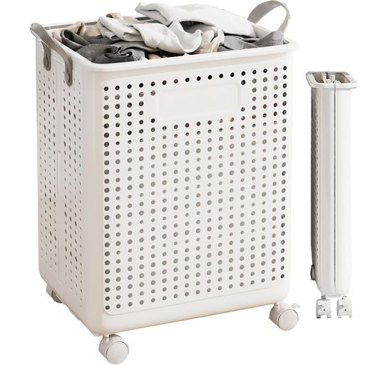 ■LONGYI 洗濯かご ランドリー バスケット 折り畳み スリム 洗濯カゴ 折りたたみ 洗濯籠 折畳み キャスター付き 取っ手付き 大容量 ランド
