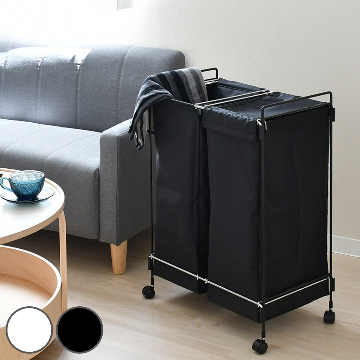 ■ランドリーバッグ ダブル ランドリーバスケット ( バスケット ランドリー 脱衣カゴ 分別 大容量 フタ付 キャスター付 かご 洗濯OK ホワ