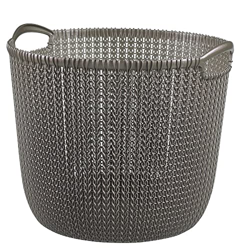 ■CURVER(カーバー) ラウンドバスケット ブラウン 30L Knit ニット収納 バスケット ランドリー ランドリーバスケット カゴ 洗濯カゴ おしゃ