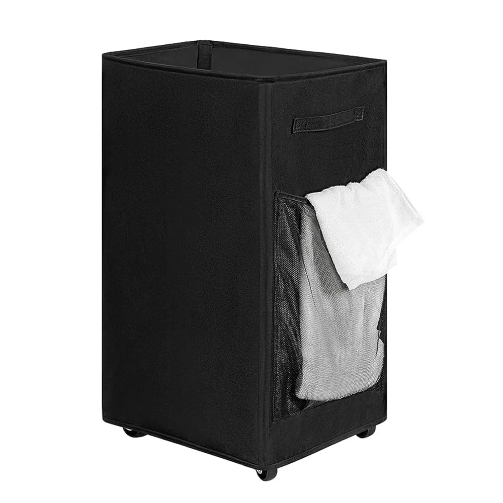 ■UZENN 90L 大容量 ランドリー バスケット 折りたためる メッシュ 洗濯カゴ キャスター付き 持ち手付き 収納ボックス 防水コーティングラ