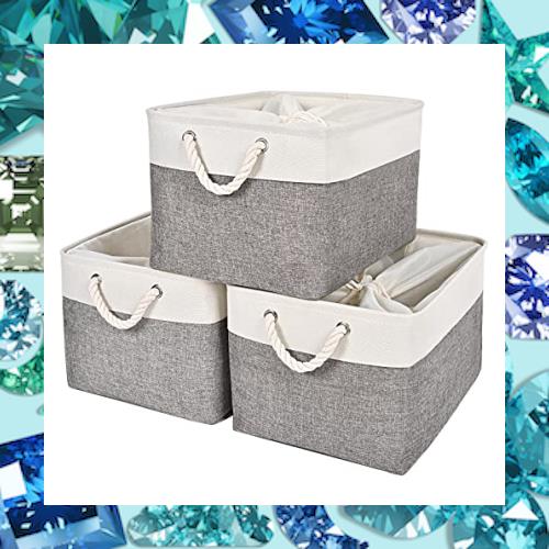 ■【Amazon.co.jp 限定】STVICTORY 収納バスケット 3個セット 40×30×24cm 無臭 巾着 取っ手付き オシャレな収納ボックス ランドリー スト