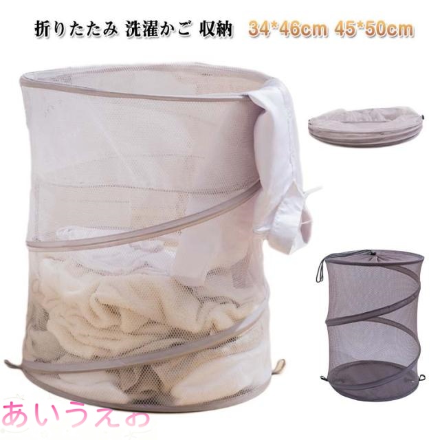 洗濯物入れ 洗濯かご ランドリー 便利 インテリア メッシュ 簡単 収納ボックス 洗濯物入れ コンパクト 軽い 折り畳み式 ランドリー用品 通気性 カビ予防 カゴ 折畳 ゴミネット ボックス 省スペース