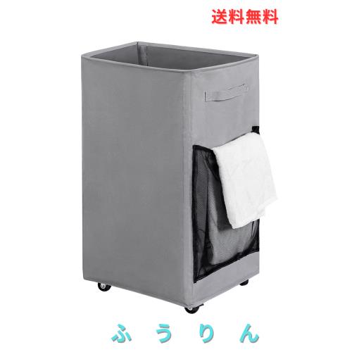 ■LongYi 洗濯かご ランドリー バスケット 折り畳み スリム 洗濯カゴ 折りたたみ 洗濯籠 折畳み キャスター付き 取っ手付き 大容量 ランド