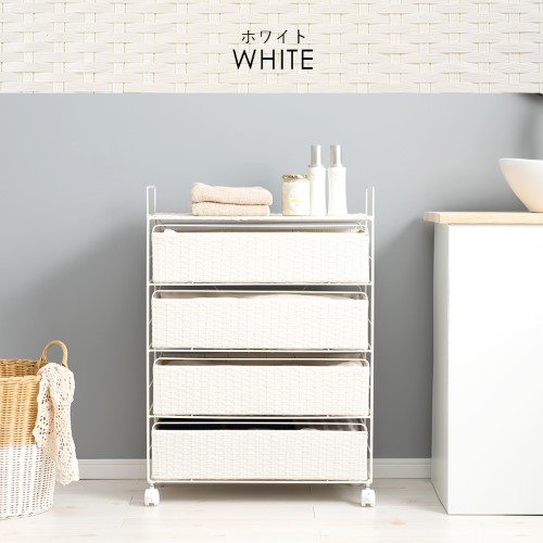 ■Laundry Storage ランドリーチェスト 幅20.5cm スリム 引出し4杯 (チェスト ランドリー スリム スチール 通気性 引き出し 防水 ラタン調