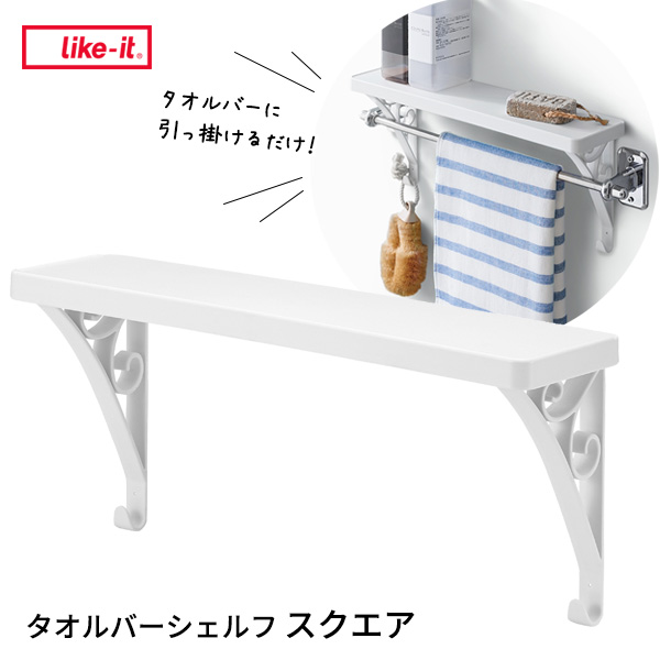 ■Like-it タオルバーシェルフ スクエア ホワイト SSR-01 | ライクイット Like-it 壁面ラック 壁面棚 タオル掛け 取付け簡単 ランドリー