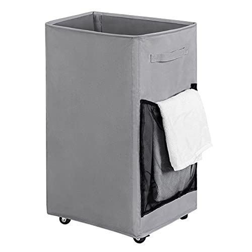 ■UZENN 90L 大容量 ランドリー バスケット 折りたためる メッシュ 洗濯カゴ キャスター付き 持ち手付き 収納ボックス 洗濯かご 防水 両側