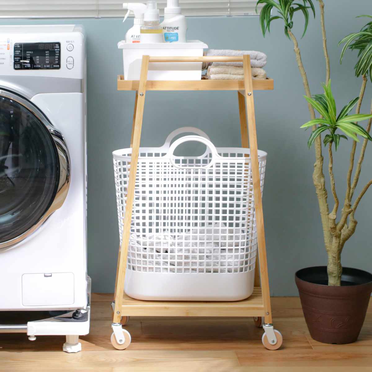 ■ランドリーワゴン 竹製ランドリーワゴン 2段 バスケット1個セット ( ランドリー ワゴン バスケット付き ライクイット キャスター付き 竹
