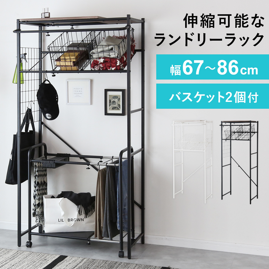■スチールラック ランドリーラック 伸縮 ランドリー収納 ランドリー ラック 洗濯機上収納 洗濯棚 洗濯機棚 洗面所 タオル 洗濯機ラック 収