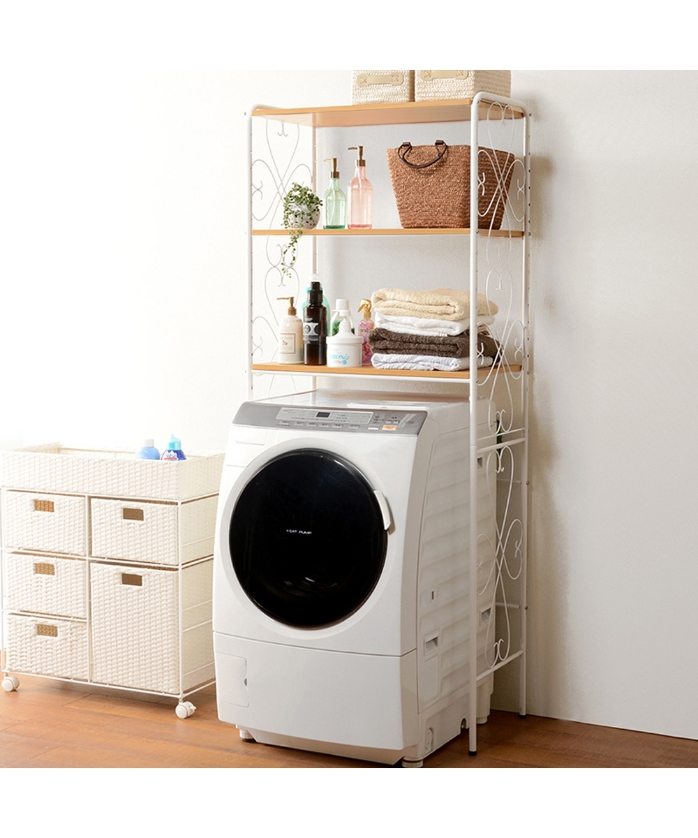 [keyword] 家具 収納 インテリア 雨対策 雨 一人暮らし 大学生 社会人 ワンルーム 1K 1DK おしゃれ 新生活 [comment] 洗濯スペースをすっきりオシャレに収納できるランドリーラック。置き場所に困る小物や洗剤の予備等もたっぷり収納できてすっきり片付きます。洗濯機上のデッドスペースを有効活用できます!棚板(3枚)は16段階に高さ調節可能なので、置きたい物によってレイアウト自由です。■メーカーからの直送商品となります。■この商品は沖縄・離島・一部地域には配達できません。■この商品は代金引換払いはご利用頂けません。