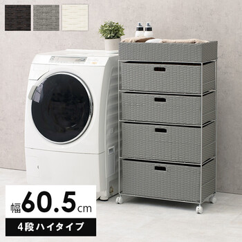 ■北海道・沖縄・離島配送不可 代引不可 ランドリー 引き出しラック 引き出し4杯 幅60.5cm 高さ85cm 洗面所 ランドリースペース 脱衣所 水