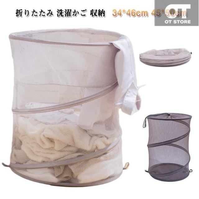 洗濯物入れ ランドリー 洗濯かご 折り畳み式 インテリア コンパクト メッシュ 収納ボックス 軽量 便利 軽い 簡単 ランドリー用品 通気性 カビ予防 カゴ 折畳 ゴミネット ボックス 省スペース カラス対策