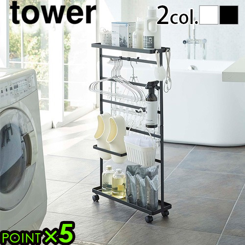 ■タワー 山崎実業 tower 洗濯用品収納ワゴン ランドリー 収納ワゴン キャスター付き スリム Yamazaki タワー ランドリー サニタリー収納
