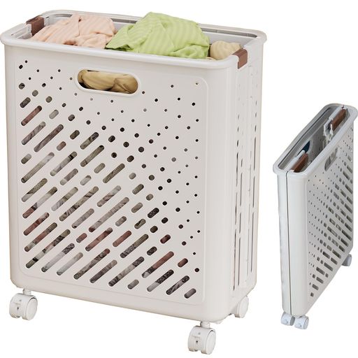 ■ZILNOX 洗濯かご 折りたたみ 洗濯カゴ スリム 大容量 ランドリー バスケット 折り畳み収納 省スペース キャスター付き 持ち手付き 通気性