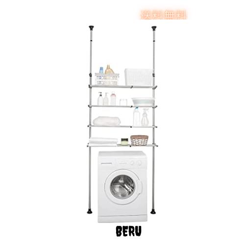 ■BAOYOUNI つっぱり棚 洗濯機ラック ランドリー 4段 突っ張り式 収納 横幅伸縮式 ランドリー収納 ステンレス 段差があっても設置できる 耐
